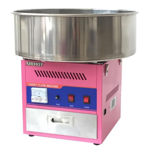 Аппарат для приготовления сахарной ваты Airhot CF-1 используется не только в кафе, магазинах и кинотеатрах, но и на открытом воздухе. На металлический бокс конструкции ставится специальная чаша, где тонкие нити накручиваются на палочку и становятся сладкой ватой.