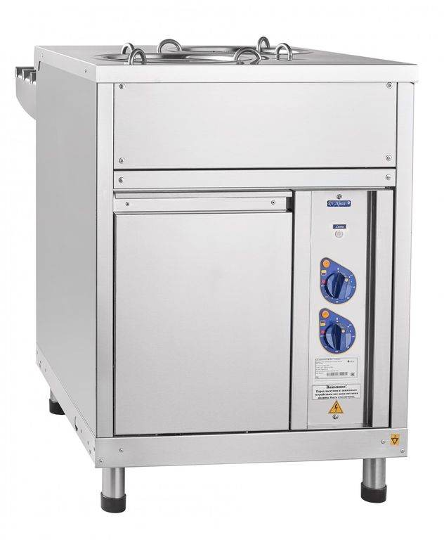 Прилавок ПТЭ-70КМ-80 предназначен для подогрева тарелок для первых и вторых блюд и раздаче их в линиях самообслуживания на предприятиях общественного питания. Пружинный механизм подъема тарелок, обеспечивающий наличие верхних тарелок на уровне столешницы. Ножки прилавка снабжены регуляторами высоты, что позволяет устранять неровности пола.