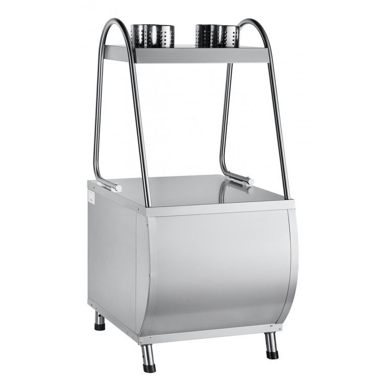 Прилавок для столовых приборов и подносов ПСП-70M предназначен для раздачи потребителю столовых приборов и подносов. Лоток для приборов имеет четыре перфорированных отсека для ложек, вилок и ножей. Снизу расположен открытый отсек для дополнительных подносов или инвентаря. Ножки прилавка снабжены регуляторами высоты, что позволяет устранять неровности пола.