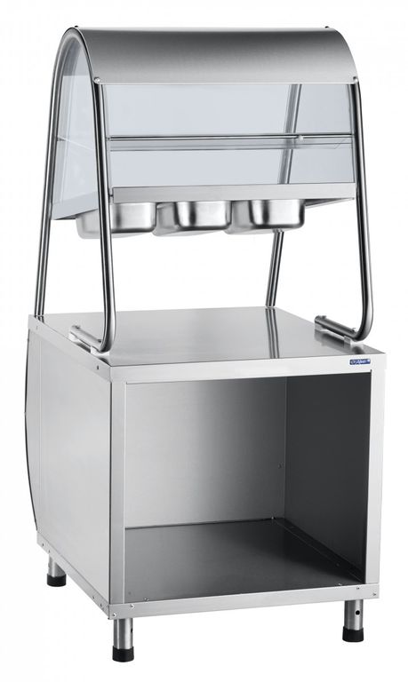 Прилавок для столовых приборов с хлебницей ПСПХ-70М предназначен для раздачи потребителю и хранения столовых приборов, хлеба и подносов. Лоток для приборов имеет три отсека для ложек, вилок и ножей, а также отдельный лоток для нарезанного хлеба. Снизу расположен открытый отсек для дополнительных подносов или инвентаря. Ножки прилавка снабжены регуляторами высоты, что позволяет устранять неровности пола.