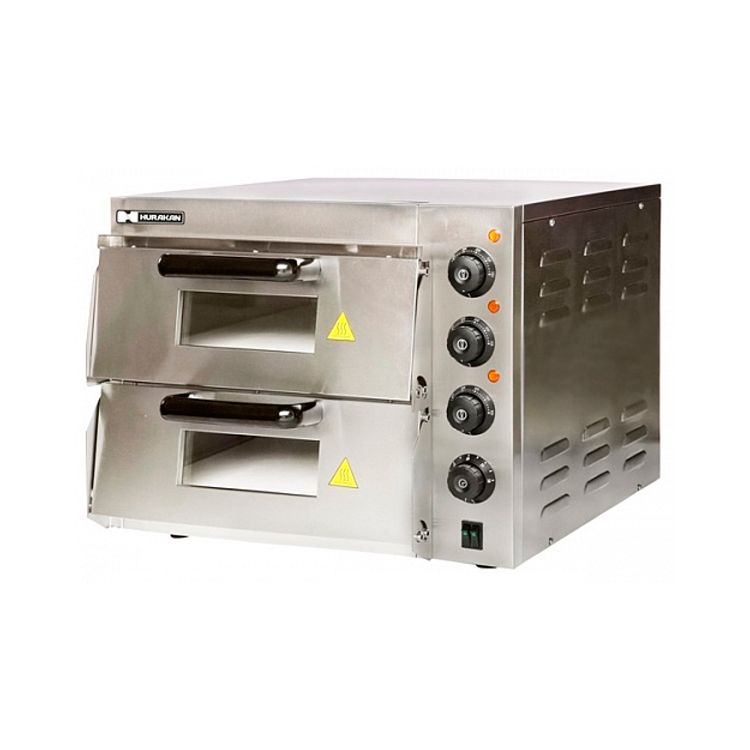 Печь для пиццы Hurakan HKN-MD11 используется на предприятиях общественного питания и торговли. Модель оснащена электромеханической панелью управления, термостатами, таймером, равномерным нагревом пищи благодаря камню для выпечки, внутренней подсветкой и дверцами со смотровыми окнами. Корпус выполнен из нержавеющей стали.