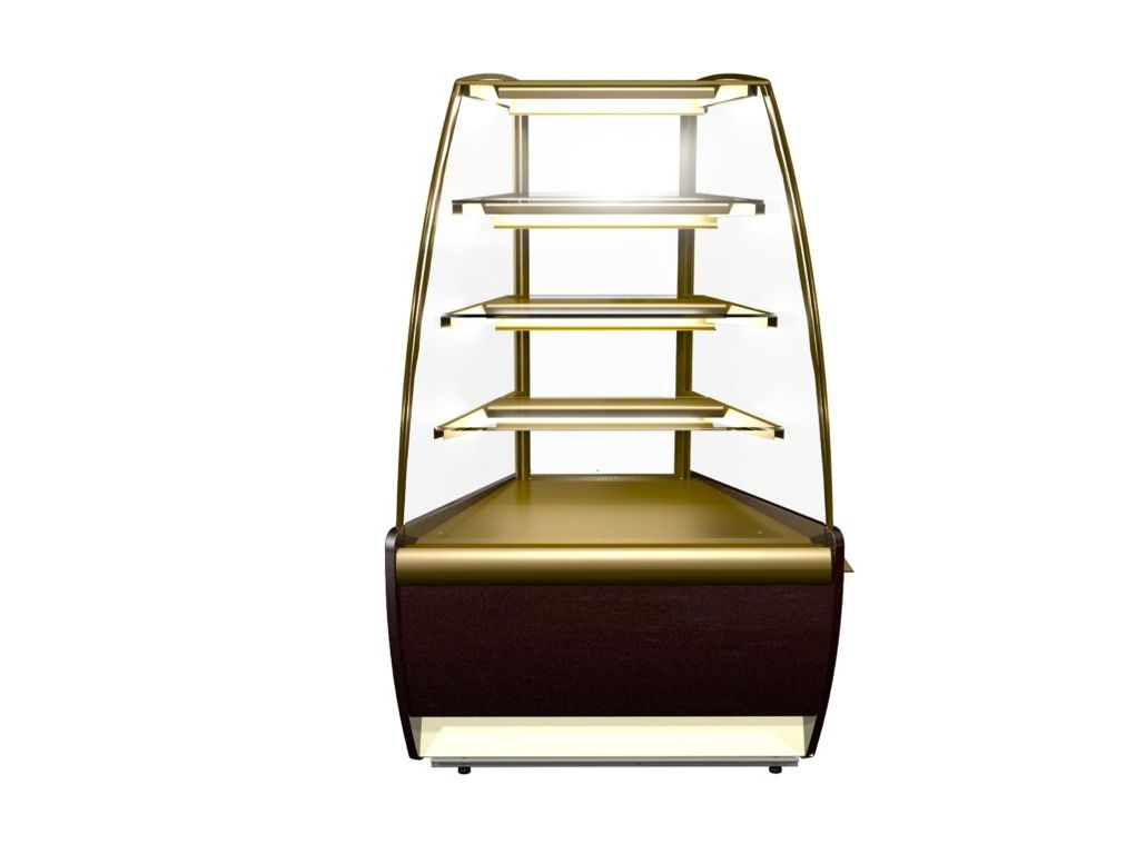 Угловая кондитерская витрина Carboma ВХСв-У1д используется на предприятиях общественного питания и торговли для демонстрации, охлаждения и кратковременного хранения тортов, пирожных и других кондитерских изделий. Модель оснащена изогнутым фронтальным и прямыми боковыми стеклами, 3 охлаждаемыми фиксированными полками, регулируемыми ножками высотой от 20 до 35 мм. Нижний уровень выполнен из оцинкованной стали золотого цвета, ночные шторки - из оргстекла.