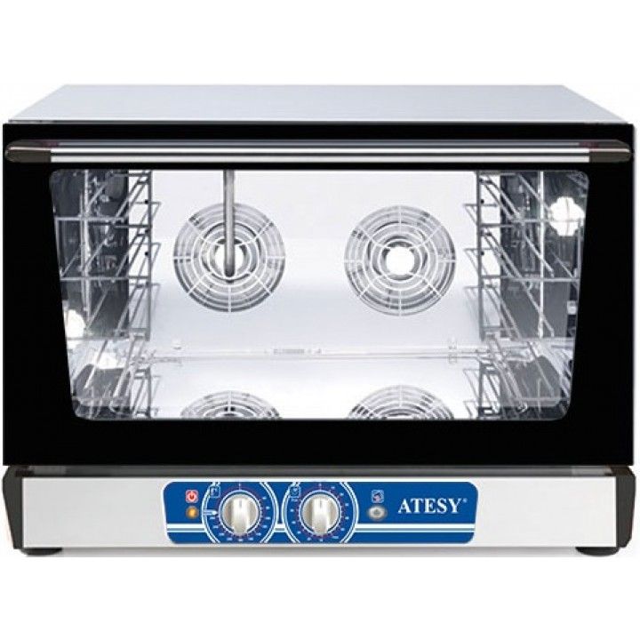 Конвекционная печь ATESY КП-4-1/1У серии Тоскана предназначена для выпечки хлебобулочных и кондитерских изделий, приготовления и разогрева различных блюд на предприятиях общественного питания и торговли. Приготовление и выпекание происходит за счет равномерной циркуляции горячего воздуха внутри камеры. Корпус и камера выполнены из нержавеющей стали, дверца - из термостойкого стекла.