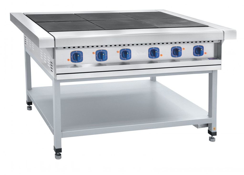 Плита электрическая Abat ЭП-6П предназначена для приготовления различных блюд в наплитной посуде на предприятиях общественного питания и торговли. Модель оснащена регулируемыми по высоте ножками.