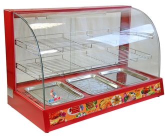 Тепловая витрина Airhot HW-3 предназначена для демонстрации, подогрева и кратковременного хранения пиццы, булочек, пирогов и различных закусок на предприятиях общественного питания и торговли. Модель оснащена терморегулятором и 2 полками-решетками. Корпус выполнен из окрашенной стали.